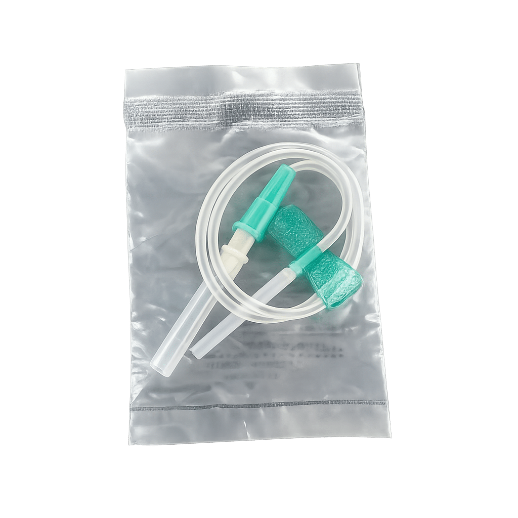 Acul de recoltare tip fluturaș cu sistem Luer Lock este un dispozitiv medical de unică folosință, steril, folosit pentru extragerea sângelui venos în scopuri de analiză sau diagnostic. Produsul este prevăzut cu două aripioare flexibile ce permit un control mai bun al inserției, reducând disconfortul și ajutând la stabilizarea acului în timpul recoltării.