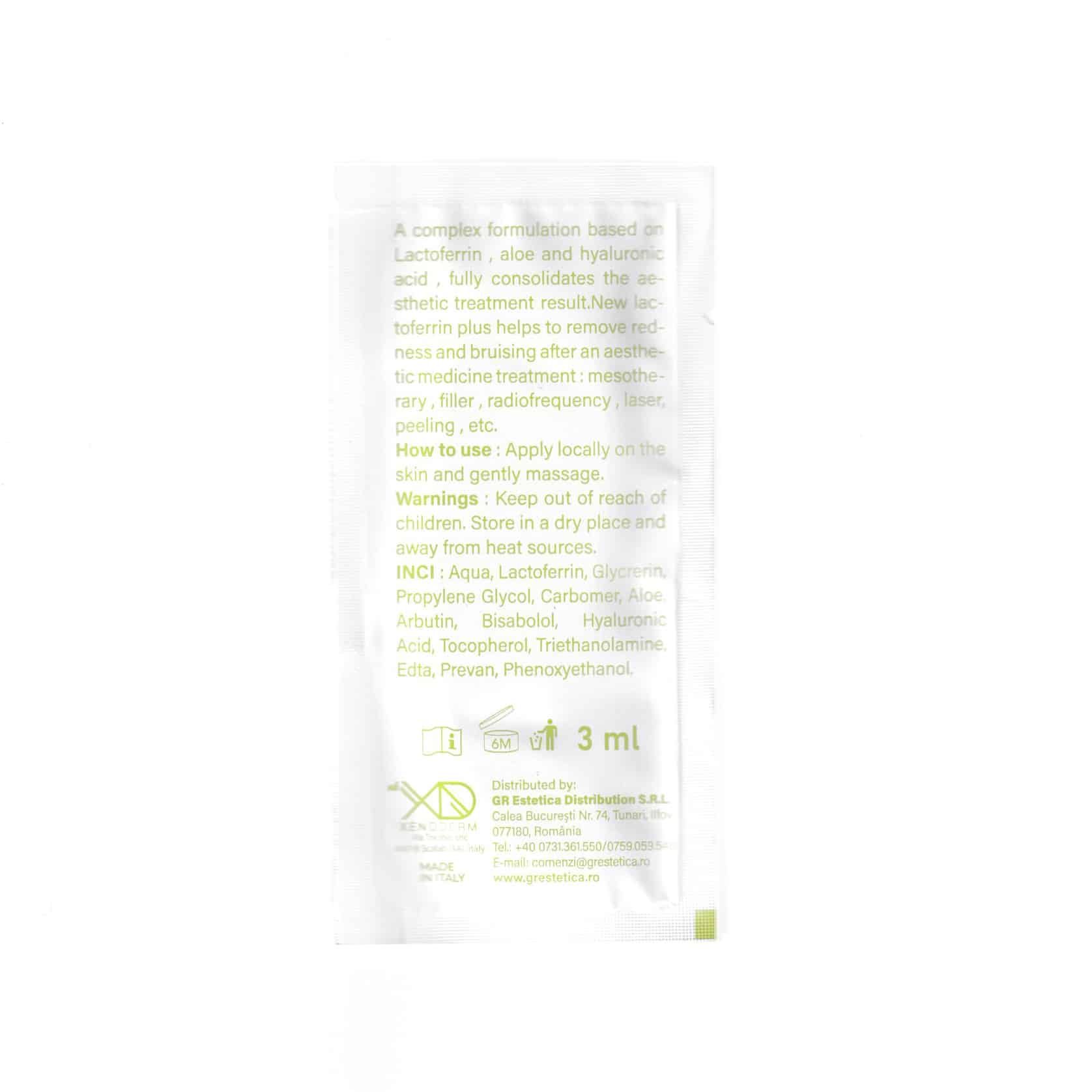 Formula sa este bazată pe lactoferină, un ingredient recunoscut pentru proprietățile sale calmante și de susținere a proceselor de regenerare cutanată. Aplicarea regulată contribuie la reducerea vizibilă a semnelor post-procedurale și la îmbunătățirea aspectului general al pielii.